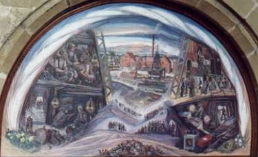 Miners Memorial painting commemorating the Gresford Colliery Disaster, in which 266 men lost their lives on 22nd September 1934.