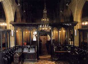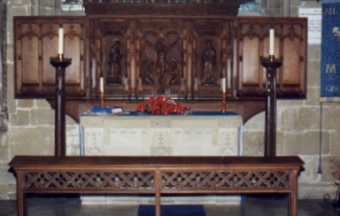 The screen which separates the nave from the chancel is fifteenth century, probably from the Ludlow workshop. The wainscoting, and the fan vaulting which is further ornamented by liernes, make it one of the finest screens in Wales.