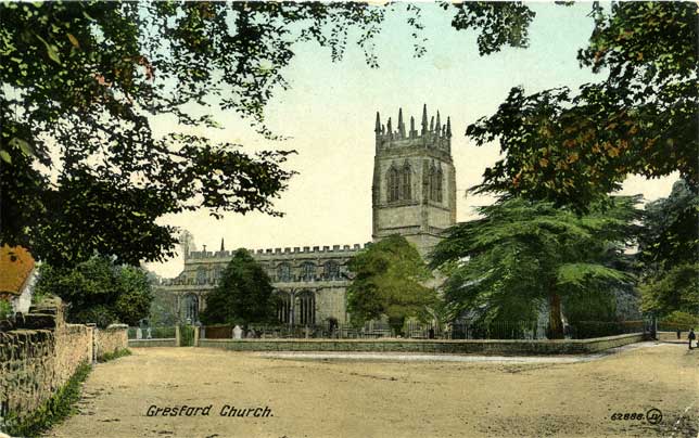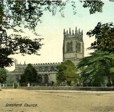 The earliest mention of a church at Gresford is in Domesday Book AD 1086, which records that there was a church and a priest at “Gretford in Extan hundred”. This spelling has given rise to a theory that the name Gresford does not derive, as is generally believed, from the Welsh Croesffordd (crossroads) but from the ford on the river Alyn on the road from Holt to Caergwrle, and that the original name is either Gretford or Gritford. It is not known whether the church mentioned in the Domesday Book was on the site of the present church; possibly it was at Marford, on or near the site of the early British camp which was destroyed by the gravel workings; possibly it was the Chapel of St Leonard in the Alyn valley. The only trace of this chapel is to be found in the name Pontycapel for the lane which led to it.