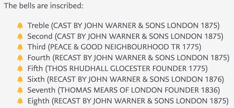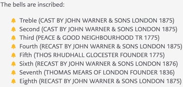 “On Friday the 8th day of December, in the year 1775, the tenor third and treble bells were returned being recast at Gloucester”.
